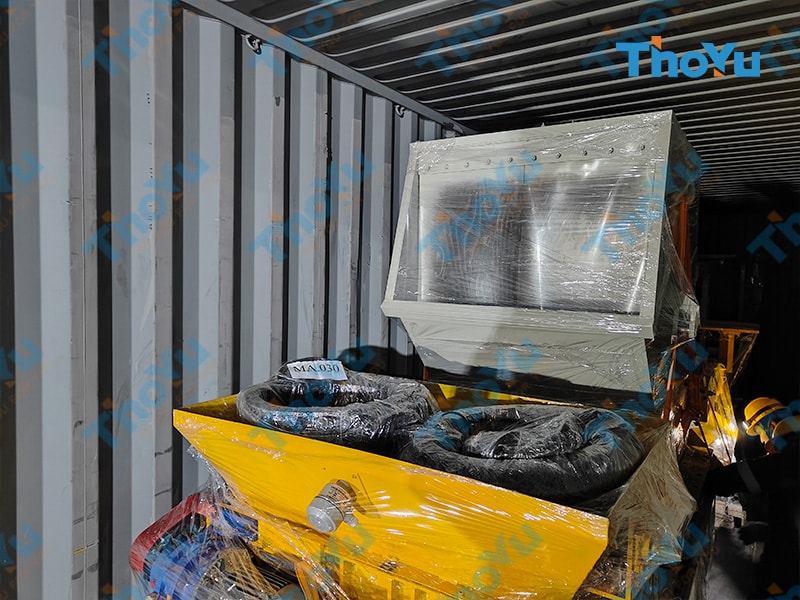 The shipment, which marks the second order from the customer, included crucial components such as a raw material crushing system(wood crushing machine), pallet molds, and an automatic feeding and leveling system(apply for compressed pallet machine). Each item was loaded into the containers with precision, following the specified loading list and securely fixed using standardized methods to ensure safe transport.