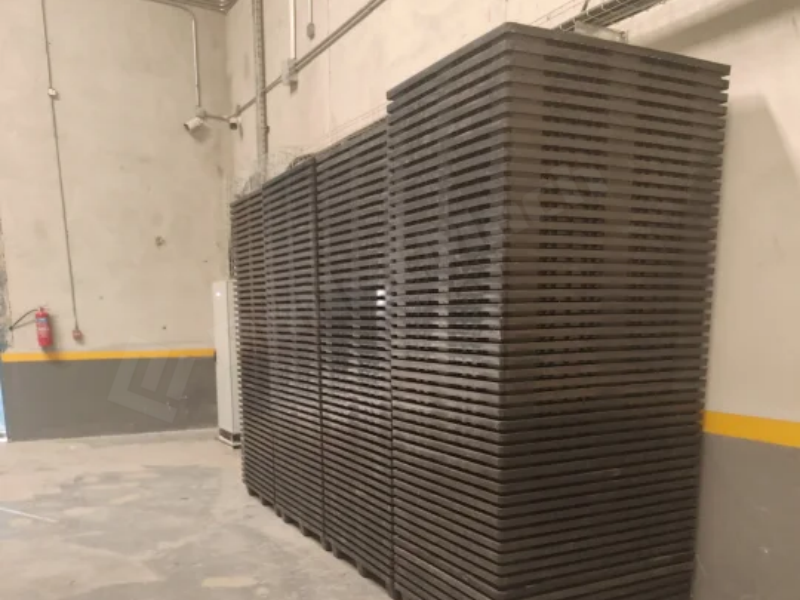 After the production line for Saudi plastic molded pallets has been running stably, one pallet is formed every 4 minutes. The single machine’s hourly output is 15 pallets, and it can continuously produce 360 high-quality pallets within 24 hours, which can quickly meet the local market demand.